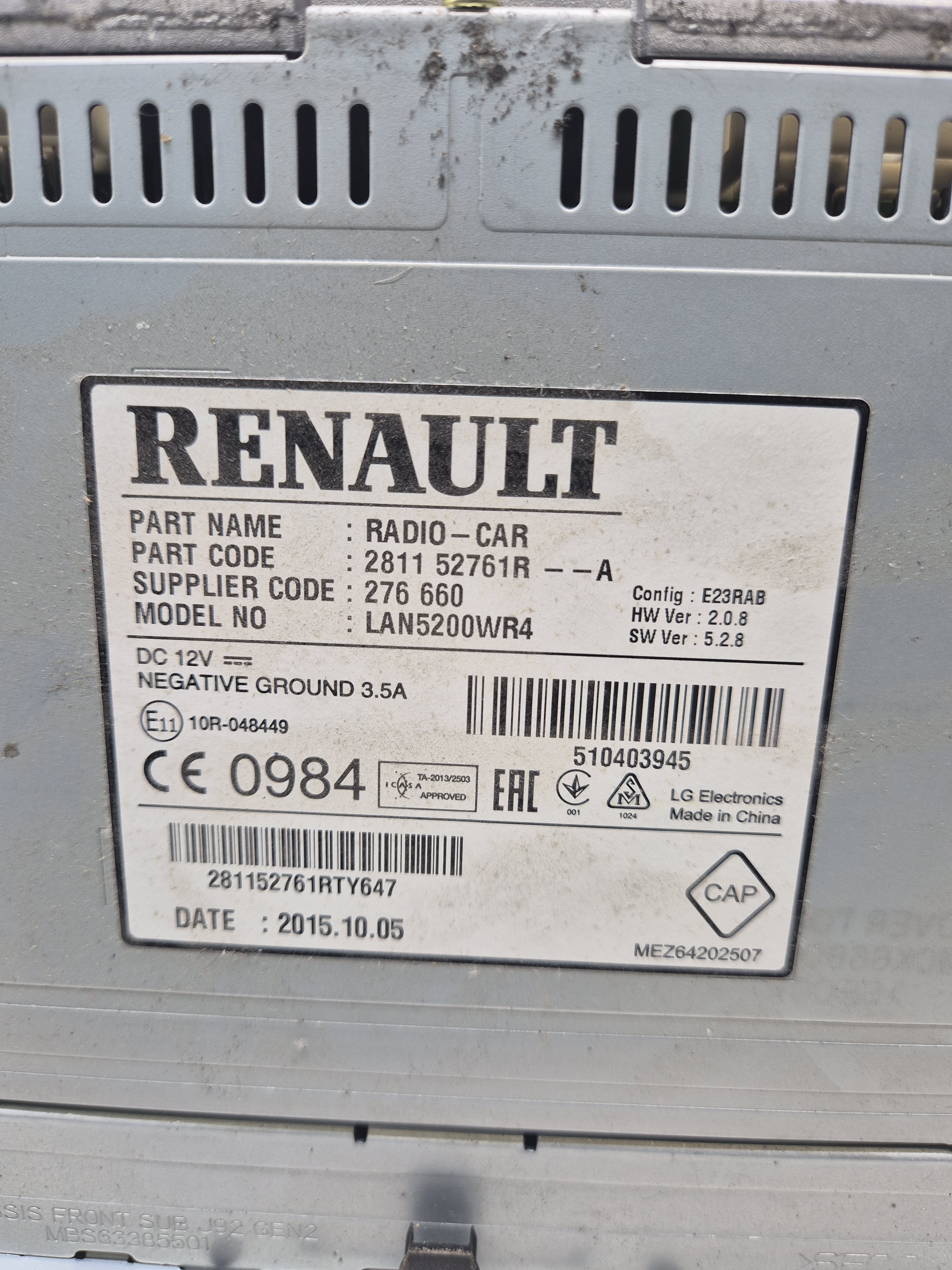 Référence RENAULT : 281157850R