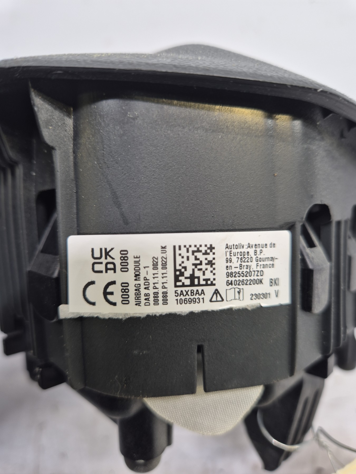 Remarque : Cette pièce peut contenir des composants à déclenchement pyrotechnique ou des systèmes hybrides avec un réservoir à gaz.