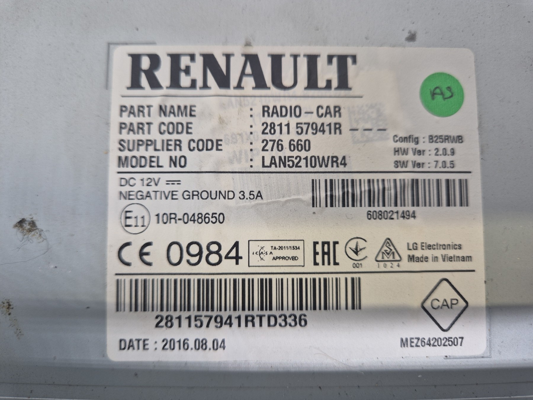 Référence RENAULT : 281157941R