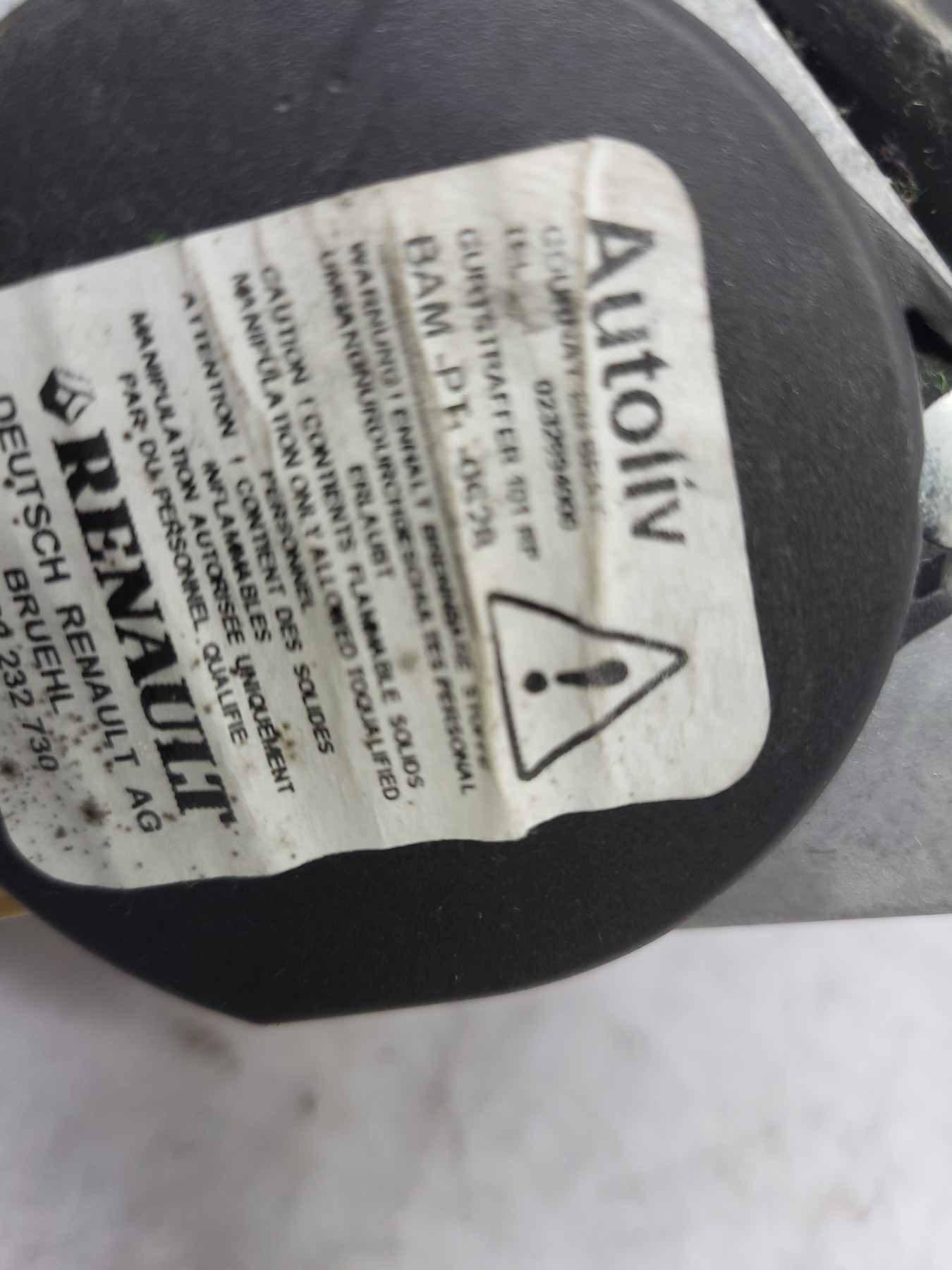 Remarque : Cette pièce peut contenir des composants à déclenchement pyrotechnique ou des systèmes hybrides avec un réservoir à gaz.