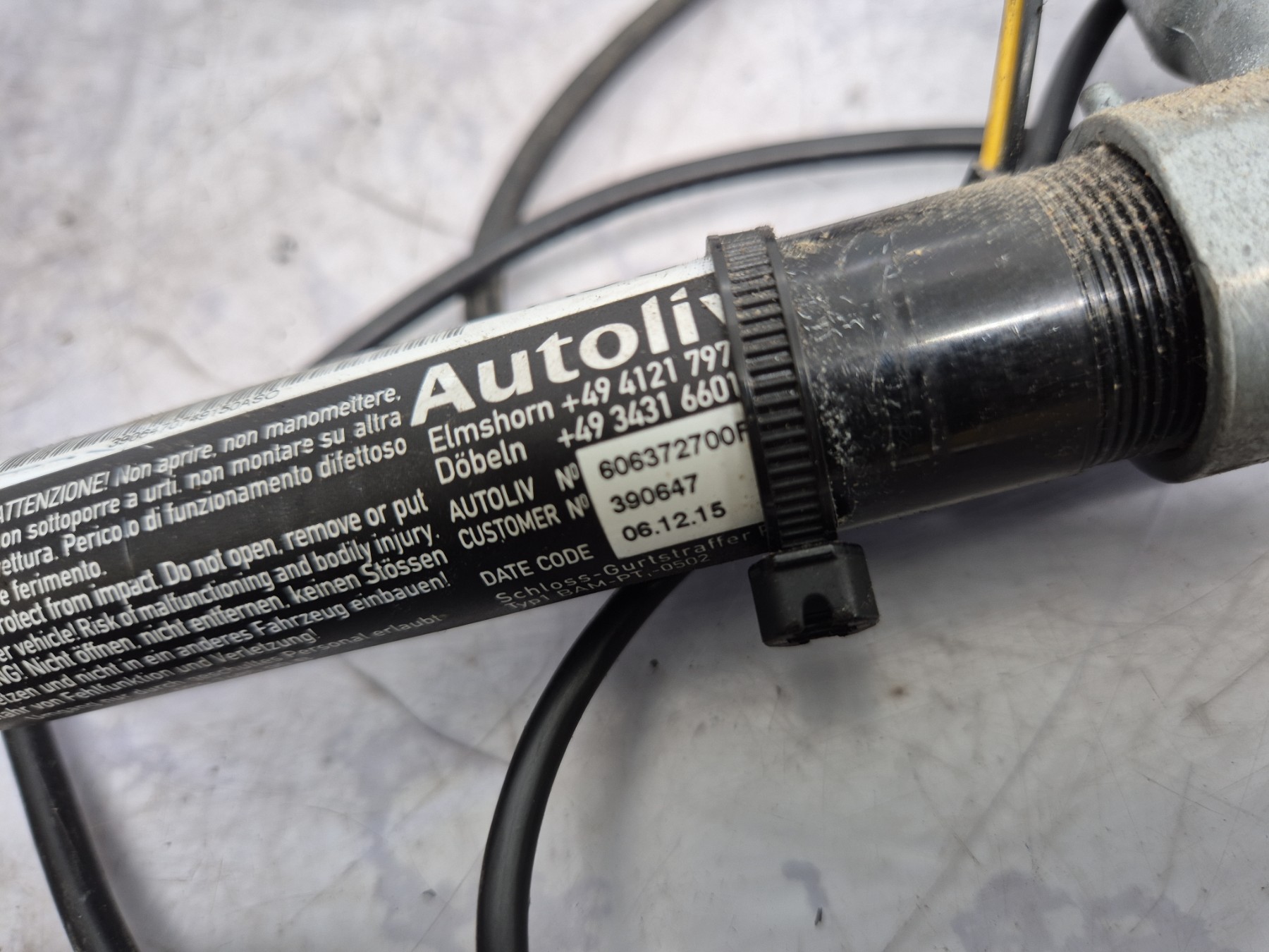 Remarque : Cette pièce peut contenir des composants à déclenchement pyrotechnique ou des systèmes hybrides avec un réservoir à gaz.