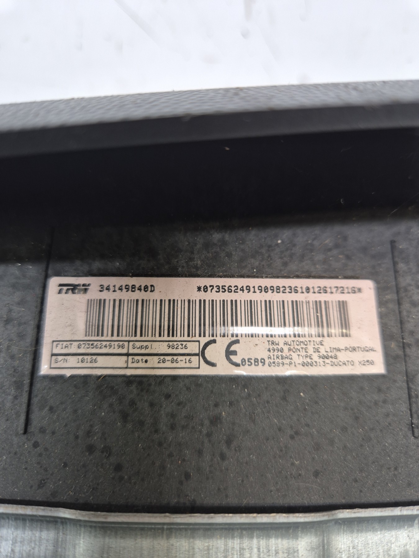 Remarque : Cette pièce peut contenir des composants à déclenchement pyrotechnique ou des systèmes hybrides avec un réservoir à gaz.
