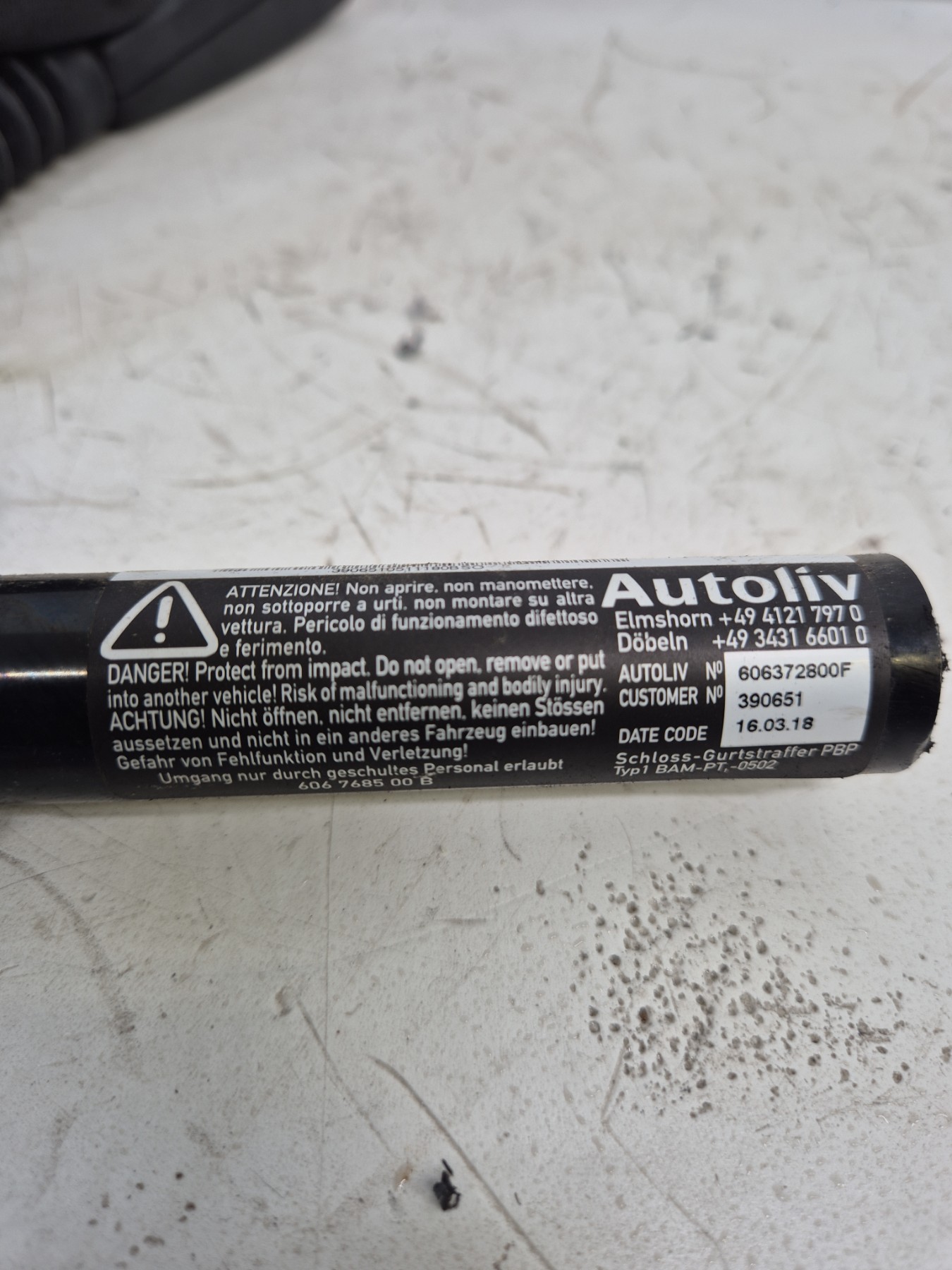 Remarque : Cette pièce peut contenir des composants à déclenchement pyrotechnique ou des systèmes hybrides avec un réservoir à gaz.