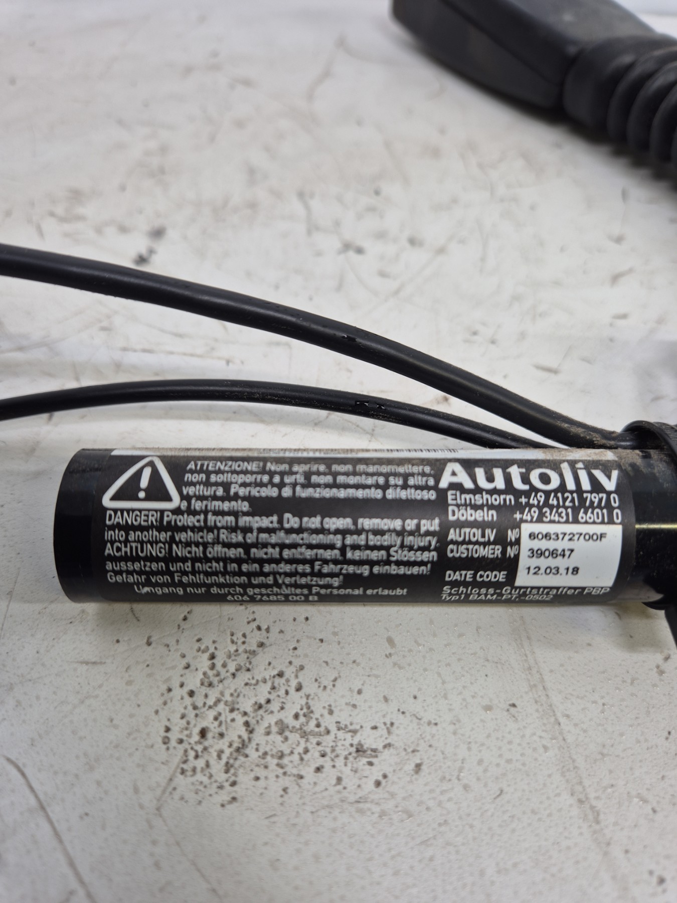 Remarque : Cette pièce peut contenir des composants à déclenchement pyrotechnique ou des systèmes hybrides avec un réservoir à gaz.