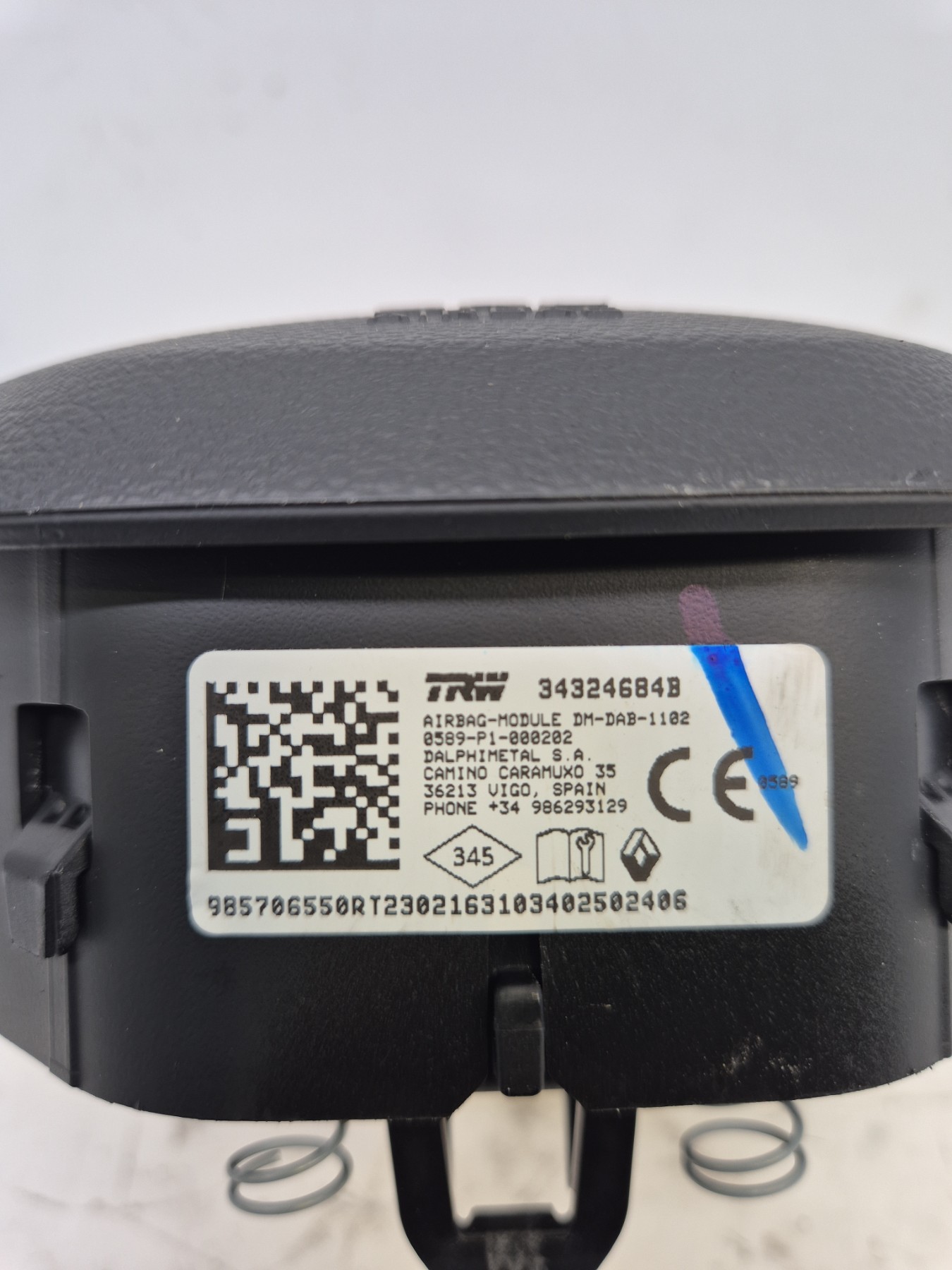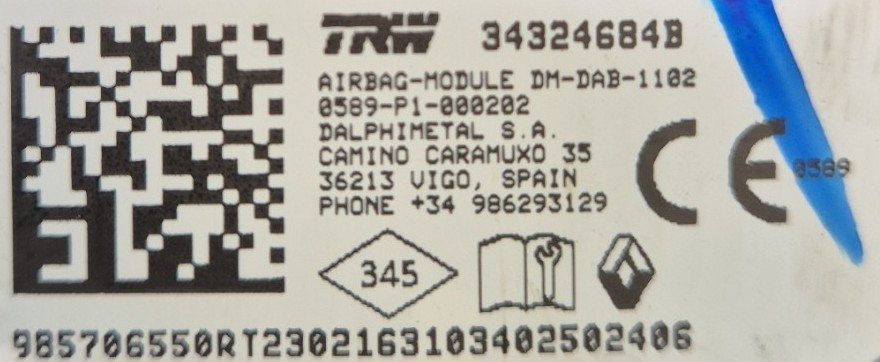 Remarque : Cette pièce peut contenir des composants à déclenchement pyrotechnique ou des systèmes hybrides avec un réservoir à gaz.