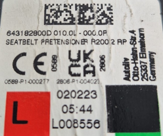 Remarque : Cette pièce peut contenir des composants à déclenchement pyrotechnique ou des systèmes hybrides avec un réservoir à gaz.